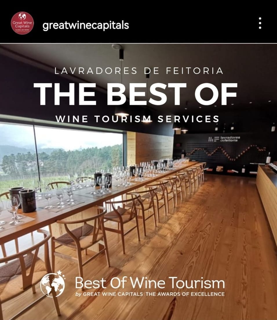 Embora a iniciativa direcionada para o enoturismo tenha pouco mais de 2 anos, o certo é que se tem revelado um autêntico sucesso. As suas particularidades e a forma como consegue dar a conhecer aos visitantes os trabalhos efetuados na Lavradores de Feitoria, culminou numa das mais importantes distinções ao nível do enoturismo. A plataforma Great Wine Capitals atribuiu o selo de “Best Of Wine Tourism 2023” na categoria de melhor serviço de enoturismo, reforçando a natural visibilidade das opções da marca, assim como o seu posicionamento.